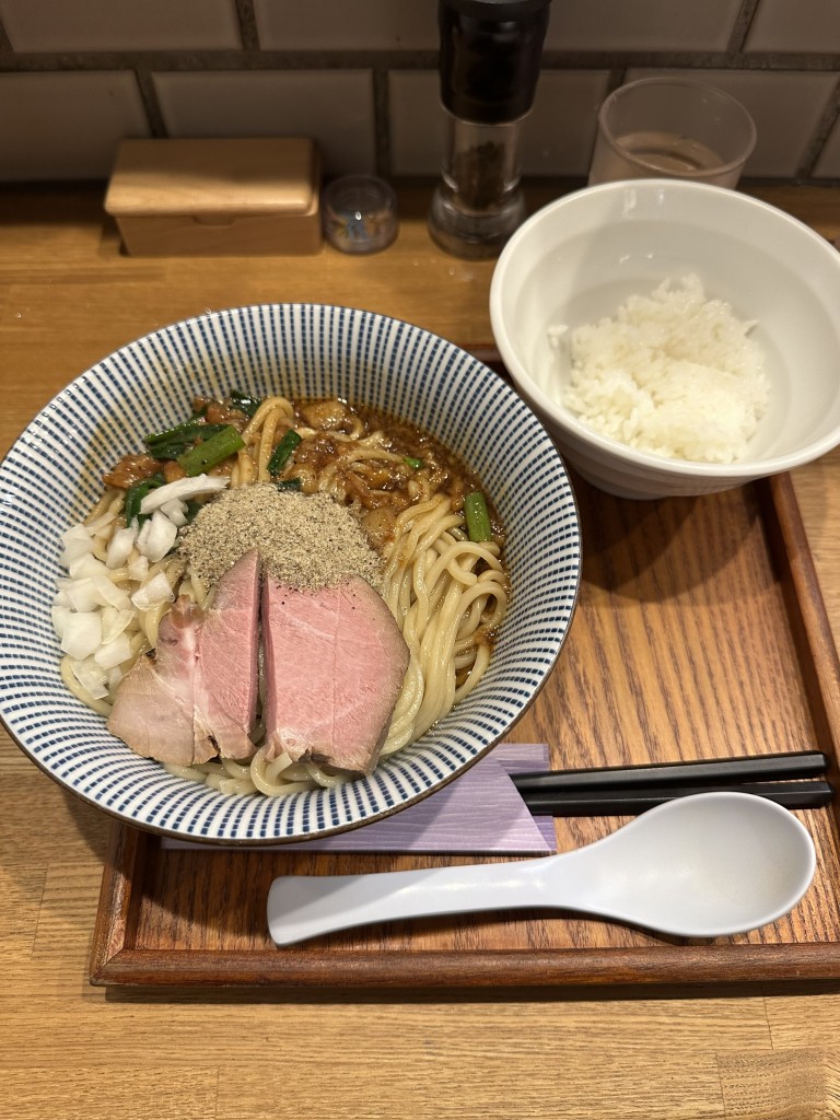 この間梅田に用があったのでついでに’まぜにぼじゃんきー’と言う名前のまぜそばを食べてきました。